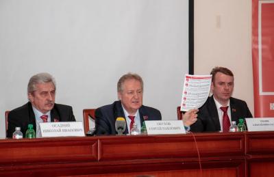 Перед представителями СМИ выступили и ответили на их вопросы: С.П. Обухов – депутат Государственной Думы, член Президиума, секретарь ЦК КПРФ; Н.И.Осадчий – руководитель фракции КПРФ Законодательного Собрания Краснодарского края, член ЦК КПРФ, первый секретарь крайкома партии; А.Н.Тренин – депутат Государственной Думы, член Бюро крайкома КПРФ; П.В.Соколенко – депутат Законодательного Собрания края, член ЦК КПРФ, секретарь краевого Комитета партии; Г.Д.Шабунин – депутат Законодательного Собрания края, председатель краевого профсоюза работников системы жизнеобеспечения, секретарь крайкома КПРФ.