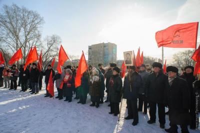 Митинг завершился под звуки Гимна коммунистов Сибири.