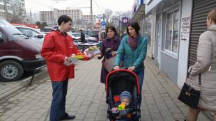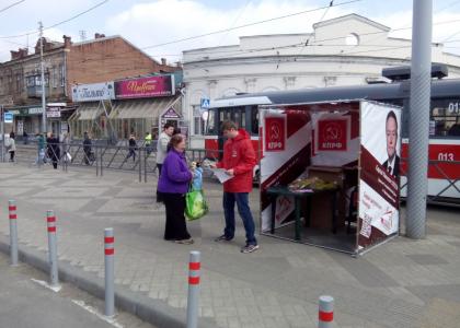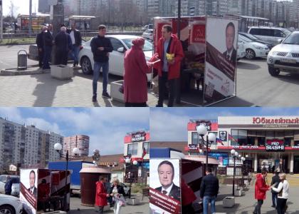Актив городского отделения КПРФ вышел на улицы города для вручения цветов нашим милым женщинам. Более 10000 букетов было роздано в этот день.