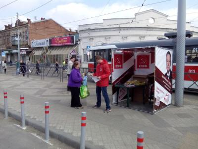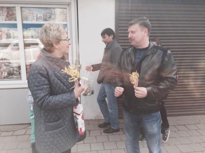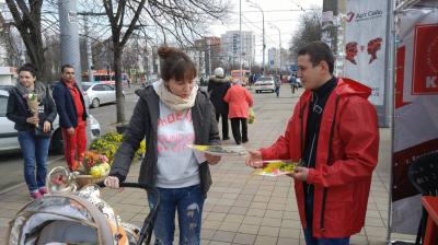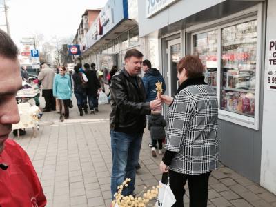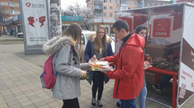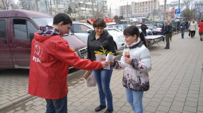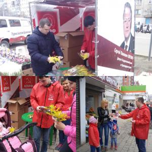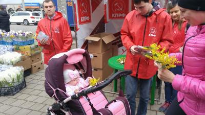 Актив городского отделения КПРФ вышел на улицы города для вручения цветов нашим милым женщинам. Более 10000 букетов было роздано в этот день.