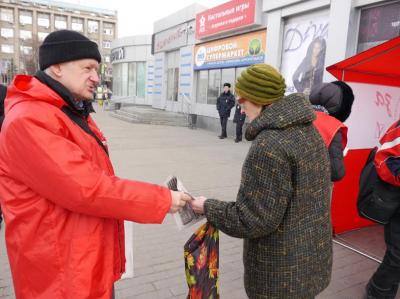 Коммунисты Липецка провели пикет, посвященный 25-летию Всесоюзного референдума за сохранение СССР.