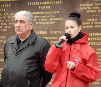 На митинге также выступила первый секретарь Нахимовского райкома КПР О.В.Ф Кальницкая и севастопольские пионеры, которые торжественно прочитали стихотворение, посвящённое Советскому Союзу.