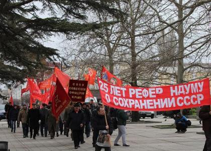 В четверг, 17 марта, в городе Симферополе коммунисты, члены Союза Советских офицеров, комсомольцы, жители и гости города вышли на площадь имени В. И. Ленина, чтобы провести торжественное мероприятие по случаю 25-й годовщины проведения референдума «О сохранении Союза Советских Социалистических Республик».