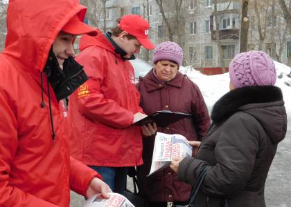 горожане останавливались возле коммунистов, отвечали на вопросы, брали