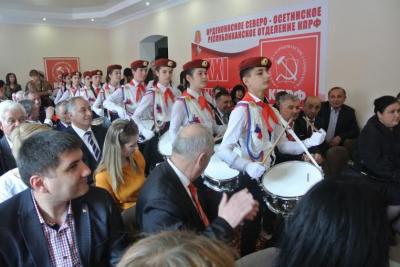 С приветственным словом к собравшимся обратился врио Главы Республики РСО-Алания Вячеслав Битаров, который в частности отметил, что пионерское детство светлыми штрихами хранится в памяти всех, кто родом из СССР. «Сегодня президентом Владимиром Путиным делает всё, чтобы возродить пионерское движение в стране». Врио Главы республики отметил, что будет всецело поддерживать это доброе начинание. Кроме того, Вячеслав Битаров пояснил, что визит на конференцию – это его принципиальная позиция: принимать участие в жизни всех партийных организаций республики. «Мы договорились с руководством вашей партии и других партий о том, что подбор кадров в Правительство республики будем проводить совместно, потому что в Правительстве должны работать самые достойные представители нашего народа независимо от того, в каких партиях они состоят и какие воззрения имеют, и такую работу с руководством КПРФ мы уже проводим. Я готов к сотрудничеству и буду приветствовать все политические и общественные силы республики, которые готовы работать во благо нашей Осетии». Врио Главы Республики далее подчеркнул, что КПРФ одна из ведущих и авторитетных политических сил в республике – об этом свидетельствует большой объем работы, проведенной за последние годы: возрожден комсомол, за что коммунистам благодарно не одно поколение людей, прошедших школу патриотизма и беззаветного труда во славу Отечества.