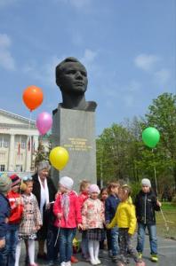 Далее участники митинга вместе с воспитанниками детского сада «Березка» и студентами ДГТУ возложили алые гвоздики и розы к бюсту Ю.А. Гагарина.