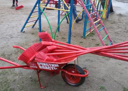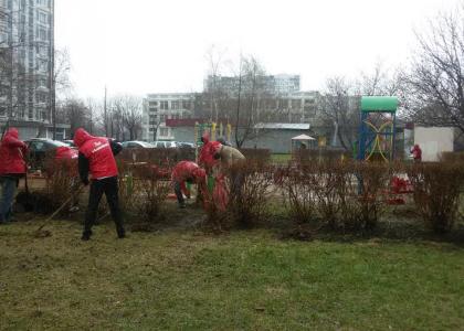 Апрель в КПРФ традиционно встречают субботниками. По просьбам жителей дома 31 по Батайскому проезду 16 апреля коммунисты во главе с Валерием Рашкиным решили не только убраться на детской площадке, но и вдвое расширить её за счет пустующего пространства. Для этого нужно было выкопать кусты, огораживающие площадку, и пересадить их подальше.