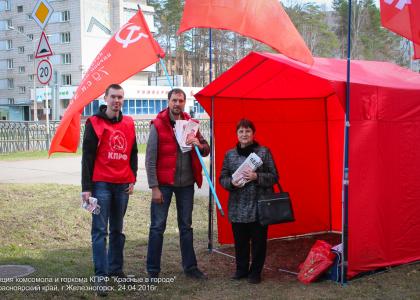 Впечатлениями от проведенного мероприятия поделилась первый секретарь КПРФ Железногорска, депутат Городского совета Вера Анатольевна Мамонтова: «Я, совместно с комсомольцами, работала на одном из наших пикетов у центрального городского рынка. Очень приятно видеть, что горожане интересуются информацией о программе и делах нашей партии. Железногорцы охотно принимали наши газеты, задавали вопросы, внимательно слушали наших агитаторов. В целом горожане положительно оценили мероприятия».