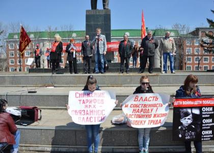 На митинге прозвучала и тема льгот для пожилых граждан, чье детство пришлось на годы Великой Отечественной войны. Вопреки нежеланию местных чиновников замечать этих людей, активисты регионального отделения общественной организации «Дети войны» продолжают уделять внимание этой социально незащищенной категории граждан. Тем радостней, что под красными стягами, олицетворяющими солидарность людей труда, прошла церемония вручения памятных медалей «Дети войны» новым членам одноименной общественной организации.