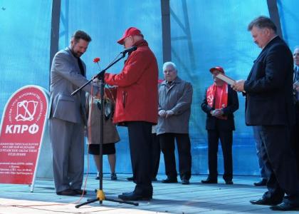 Вел маевку секретарь Курганского горкома КПРФ В.Л.Зырянов. Он предоставил слово члену ЦК, первому секретарю обкома КПРФ, руководителю фракции КПРФ областной Думы В.А.Кислицын, который, поздравив участников митинга с Днем международной солидарности трудящихся, рассказал о программе КПРФ «10 тезисов Г.А.Зюганова», зачитал приветствие лидера КПРФ, вручил партийный билет молодому коммунисту А.В.Падунову.