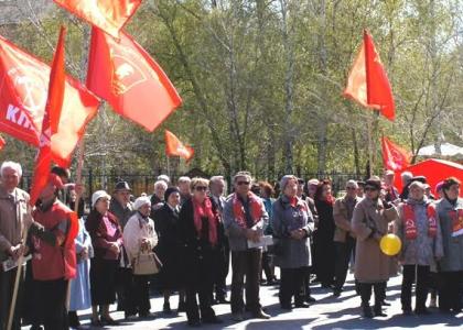 В Кургане члены КПРФ сначала приняли участие в демонстрации, которую организовала Федерация профсоюзов области. Представители трудовых коллективов, общественных организаций, политических партий собрались у Культурно-выставочного зала и у Дворца культуры машиностроителей. Колонны демонстрантов с двух сторон влились на площадь имени В.И.Ленина, где состоялся митинг. Коммунисты шли с красными флагами КПРФ, СССР и ЛКСМ, с лозунгами и транспарантами «Нищета народа – позор для страны!».