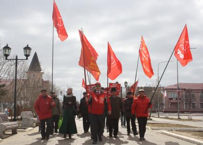 Колонна коммунистов и сторонников КПРФ прошла по улице Смидовича — центральной улице г. Нарьян-Мара с лозунгами, кричащими о позорном для нефтяного региона банкротстве предприятий и сокращении рабочих мест, необходимости обуздания распоясавшихся коммунальщиков.