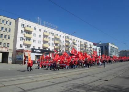1 мая в День международной солидарности трудящихся коммунисты Перми массово вышли на демонстрацию. Колонна Пермского краевого отделения КПРФ мощной красной волной заполнила улицы города. Под ярким солнцем в синем небе реяли алые флаги, звучала музыка с головной машины, на которой был начертан главный лозунг, главный девиз коммунистов: «Защитим человека труда!» Транспаранты в руках демонстрантов говорили о главных целях и задачах партии: