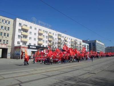1 мая в День международной солидарности трудящихся коммунисты Перми массово вышли на демонстрацию. Колонна Пермского краевого отделения КПРФ мощной красной волной заполнила улицы города. Под ярким солнцем в синем небе реяли алые флаги, звучала музыка с головной машины, на которой был начертан главный лозунг, главный девиз коммунистов: «Защитим человека труда!» Транспаранты в руках демонстрантов говорили о главных целях и задачах партии: