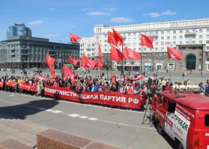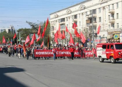 Первомай сегодня вновь стал в России днём борьбы. Борьбы за права трудящихся, за мир, свободу, равенство, дружбу и братство всех народов. Челябинские коммунисты и их сторонники в этот день традиционно провели демонстрацию и митинг. Под духовой оркестр, с Красными знамёнами, флагами и транспарантами их колонна прошла с места сбора на Алом поле по проспекту В.И. Ленина до памятника Вождю на площади Революции.