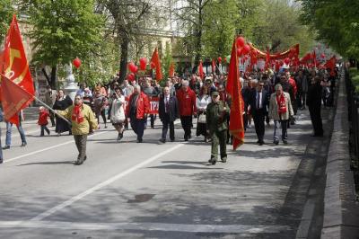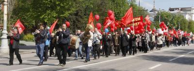 Как всегда, коммунисты участвовали в общем шествии представителей профсоюзов и партий, чтобы иметь возможность работать в массах и разъяснять позицию КПРФ по общественно значимым вопросам, но самостоятельной колонной. К слову сказать, ряды демонстрантов провластных сил в этом году значительно поредели, а КПРФ – заметно прибавились. И дело не только в совпадении Первомая-2016 с праздником Пасхи, но и в общественных настроениях. Всё больше граждан возмущены тем, что под правильные патриотические лозунги власть душит народ растущими ценами, тарифами на услуги ЖКХ, налогами и прочими поборами. Не случайно официального митинга как такового не было – руководители области и города, лидеры «Единой России», опасаясь услышать нелицеприятные вопросы и выводы людей об ухудшении их жизни по вине проводимого в стране либерального курса, ограничились приветственным маханием со сцены участникам шествия.