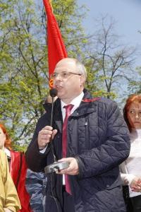 Митинг в сквере у памятника Жертвам белого террора прошёл на высоком эмоциональном подъёме и, что называется, на одном дыхании. Открывая митинг, второй секретарь обкома КПРФ, руководитель фракции Компартии в областной Думе А.И. Рогатнев подчеркнул непреходящую роль великого Первомая, единства всех трудящихся нашей страны.