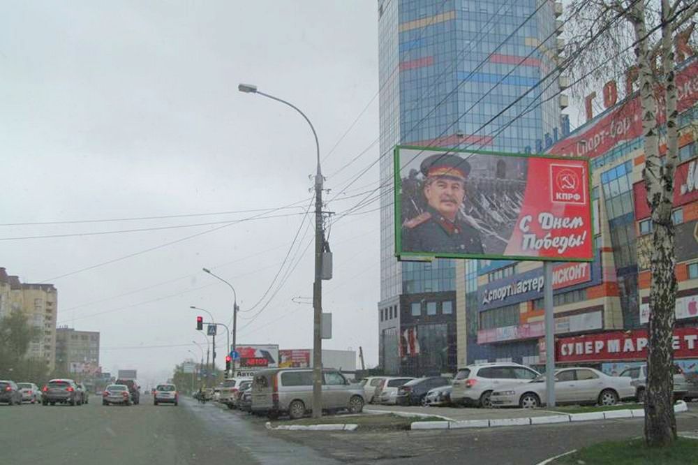 Поздравительные баннеры КПРФ с портретом Иосифа Сталина появились в Новосибирске. По мнению участников Великой Отечественной войны, таким образом, восстанавливается историческая справедливость.