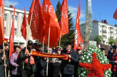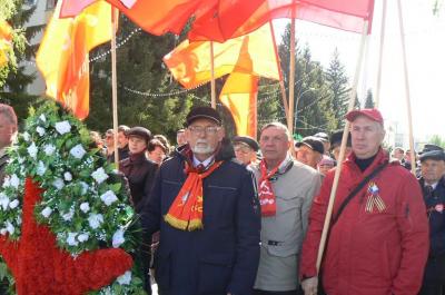 Они пришли на шествие во главе с членом ЦК КПРФ, первым секретарем обкома КПРФ В.А.Кислицным и первым секретарем Курганского горкома Компартии Я.С.Сидоровым с красными знаменами Победы, СССР, и ЛКСМ, в партийных шарфах. Со свои знаменем пришли на праздник и члены организации детей войны. Поэтому, несмотря на многотысячный состав демонстрации, коммунистов было видно издалека. Многие участники праздника специально подходили поближе, чтобы встать рядом, многие — чтобы сфотографироваться под знаменами Победы..