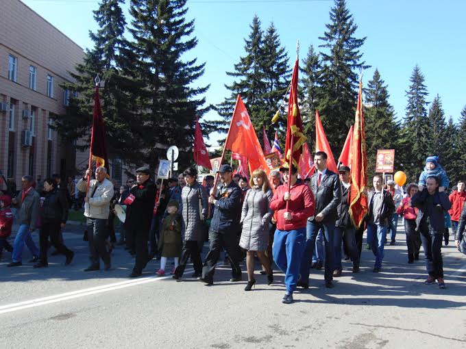 После возложения коммунисты прошли праздничной колонной с красными знаменами, портретами маршалов Победы и Иосифа Сталина по проспекту Социалистическому до площади Советов. По ходу шествия коммунисты скандировали: «Слава великому Сталину!», «Слава Советской Армии!», «Слава Великой Победе!», «Наша партия – КПРФ!» и «Наша Родина – СССР!».