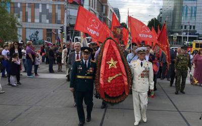 Венок с надписью «Героям Отечества – от КПРФ и Союза советских офицеров» торжественно несли офицеры-ветераны армии и флота.
