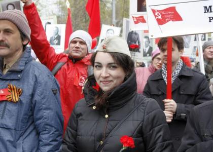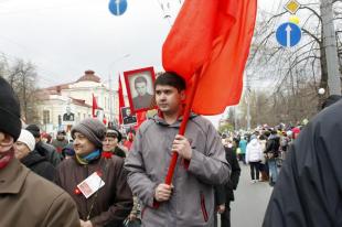 Вот уже три года в Томской области действует закон о копии Знамени Победы, разработанный и принятый по инициативе КПРФ. Несмотря на это, коммунисты решили ещё раз напомнить томичам об истории этого легендарного Знамени. Перед началом и во время шествия волонтеры в красных накидках раздавали горожанам буклеты и красные ленточки - символ настоящего, алого Знамени Победы.