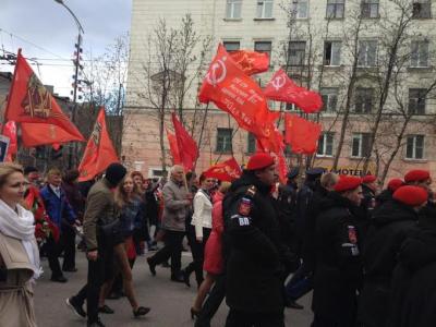 А сегодня ветераны в строю: вместе с членами КПРФ, членами Союза советских офицеров, «Надеждой России» они в колонне, которая прошла от центра Мурманска к памятнику Защитникам Советского Заполярья.