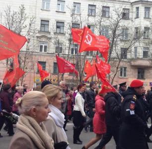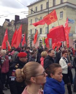 В колонне много красных знамен. Удалось всё же переломить сопротивление едроссовской власти, пытавшейся вытравить из памяти людей Красное Знамя Победы, стремясь заменить его другими цветами. Усилиями депутатов фракции КПРФ, представителей КПРФ в местных органах власти удаётся добиться, чтобы без Копии Знамени Победы не обходились мероприятия, посвящённые событиям Великой Отечественной войны. Пусть порой со скрежетом зубов, но исполнительные органы власти вынуждены считаться с представителями КПРФ в этом вопросе.
