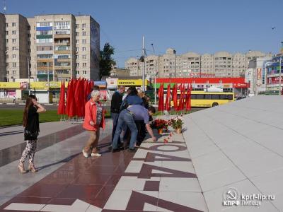 Утром 9 Мая празднование в Липецке началось с возложения цветов к памятнику Генералиссимусу СССР И.В. Сталину. Потом коммунисты города отправились на пл. Победы и возложили цветы к стеле Победы.