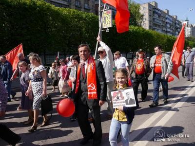 На подходе к площади Героев колонна коммунистов прошла в живом коридоре горожан, которые приветствовали красное Знамя победы и марш КПРФ. Потом красные колонны выстроились на площади Героев, где состоялся общегородской митинг в честь 71-летия Победы.