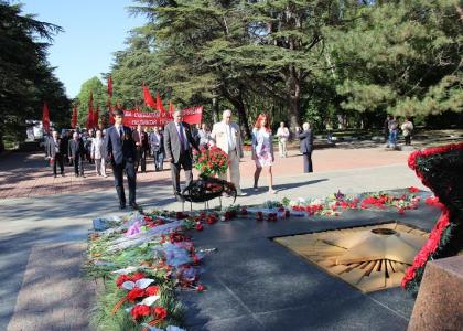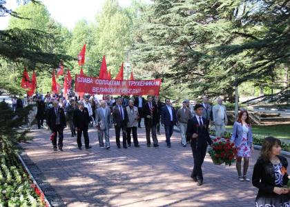 В Симферополе у могилы «Неизвестного солдата» в городском парке им. Ю. А. Гагарина состоялось шествие-митинг.