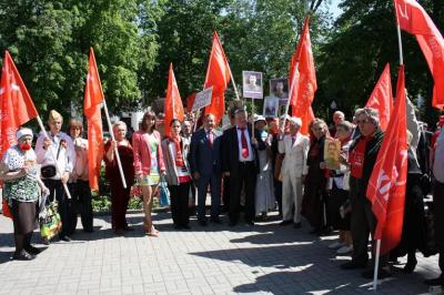 Органично вписалось в общую канву праздника участие воронежских коммунистов и их союзников. Активисты КПРФ и комсомольцы, члены Союза советских офицеров и общественной патриотической организации «Дети военного времени» вручили воронежцам, собравшимся на праздничные мероприятия, несколько тысяч открыток «Где коммунисты, там Победа», выпущенных в канун 9 мая. Затем краснознаменная колонна во главе с секретарями обкома КПРФ – заместителем председателя областной Думы С.И. Рудаковым и руководителем фракции КПРФ А.И. Рогатневым прошла по центру города в составе Бессмертного полка.