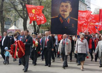 Стоявшие плотной стеной по маршруту следования колонны жители города радостно приветствовали участников шествия, подхватывали лозунги и кричалки КПРФ, охотно фотографировались на фоне большого портрета Сталина.