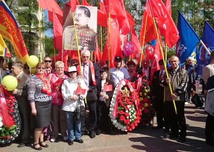 Митинг и возложение цветов состоялись в Тихвине. На мероприятии выступил представитель КПРФ. В праздничном шествии наши товарищи принимали участие под собственными флагами КПРФ.