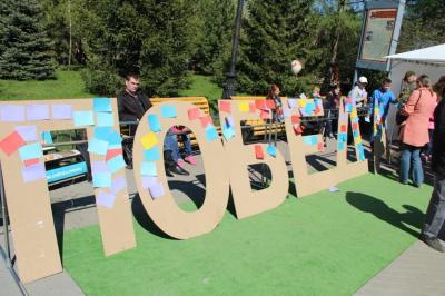 Одним из центральных объектов праздника стала огромная надпись «ПОБЕДА», на которой каждый желающий смог разместить своё поздравление с Днём Победы.