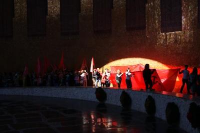 подножия Мамаева Кургана комсомольцы развернули шестиметровую копию Знамени