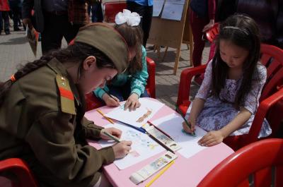конкурсы детских рисунков, стихов и песен. Работала военно-полевая кухня. В