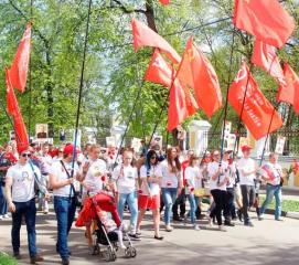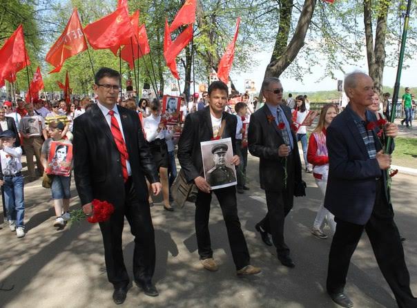 В этом году – семьдесят первой годовщины Победы за час до начала парада на Советскую площадь Ярославля вошла группа комсомольцев с флагами СССР. Ребята раздавали жителям города открытки с поздравлением обкома КПРФ, а детям вручали красные флажки.