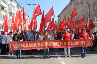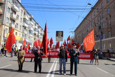 В составе праздничной демонстрации отдельной колонной шла краснознамённая гвардия коммунистов, комсомольцев, сторонников КПРФ. Коммунисты остаются верны Красному знамени, под которым наша Великая Родина – Союз Советских Социалистических Республик – громила фашизм под Сталинградом и на Курской дуге, на Чёрном море и на Балтике, верность которому хранили брянские партизаны и подпольщики. Именно под Красным знаменем советский народ совершил невиданный в истории подвиг противостояния мощной немецкой военной машине, которая сумела разгромить французскую армию и английский экспедиционный корпус всего за 44 дня. Наше Социалистическое Отечество не только выстояло, но и освободило покорённую Европу, водрузив Красное знамя над поверженным логовом врага!