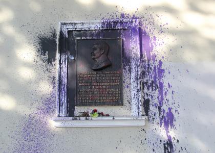 В ночь с 17 на 18 мая 2016 года на здании Крымского рескома КПРФ неизвестными лицами была осквернена мемориальная доска И.В.Сталину. Это уже не первая попытка акта вандализма по отношению к этому памятному знаку. Напомним, что точно такой же акт вандализма был совершён в ночь с 5 на 6 марта настоящего года.