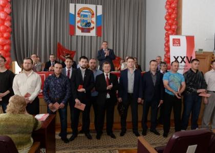 конференция началась с вручения партийных билетов новым коммунистам. Коммунисты