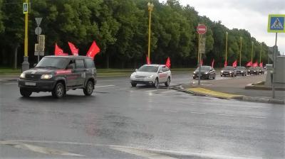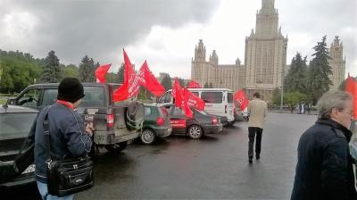 Пятнадцать автомашин с красными флагами и лозунгами по бокам - «Бесплатное здравоохранение», «Лучшая в мире система образования», «Передовые рубежи в Космосе», «Статус страны-миротворца», «Доступное жилье» и другие – взяли старт в районе Теплый Стан, Коньково и финишировали на площадке у МГУ.