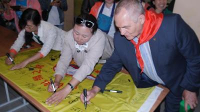 участники поставили свои подписи на Знамени дружбы, которое будет храниться в
