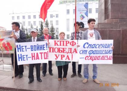 21 июня на площади Ленина Якутска собрались коммунисты, комсомольцы, сторонники КПРФ, жители и гости города. У собравшихся в руках — красные флаги, лозунги и транспаранты: «Память о Великой Отечественной войне — священна!», «НАТО — прочь от границ России!», «Ветеранам и детям войны — достойную жизнь!» и другие.