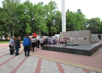 Отдавая дань памяти советским гражданам, отстоявшим Советский Союз три четверти века назад, и жертвам нацизма, погибшим под бомбами, в концлагерях, от голода, холода и тяжелейших испытаний Великой Отечественной войны, коммунисты Биробиджана возложили цветы к Монументу Славы и Вечному огню. Члены местной партийной организации восстановили историческую справедливость, напомнив, что германский нацизм был разгромлен под руководством Иосифа Сталина, и установили его портрет у Вечного огня рядом с плитами, на которых высечены имена солдат и офицеров, приближавших победу под командованием генералиссимуса Сталина.