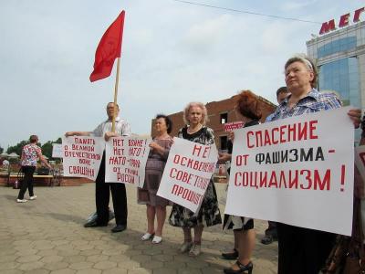 С такими лозунгами вышли на пикет, приуроченный ко Дню Памяти и скорби по случаю 22 июня, коммунисты Биробиджана. Участники протестной акции напомнили жителям и гостям столицы Еврейской автономии о той роли, которую сыграли капиталистические государства в разжигании Второй мировой войны.