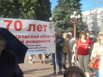 В понедельник, 4 июля, калининградские коммунисты провели митинг в честь 70-летия образования Калининградской области. Девизом мероприятия, проходившего у памятника М. И. Калинину возле Южного вокзала, стали слова «70 лет Калининградской области – Победой рожденной».