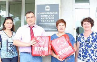 8 июля избирательный штаб Амурского отделения КПРФ сдал в областную избирательную комиссию документы для регистрации списка кандидатов в депутаты Законодательного Собрания Амурской области. В официальной процедуре приняли участие первый секретарь Амурского обкома КПРФ Роман Кобызов, уполномоченный избирательного объединения КПРФ, начальник избирательного штаба Татьяна Ракутина, финансовые уполномоченные избирательного объединения.