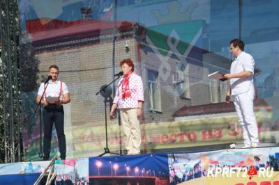 В 15 часов началась праздничная программа. Местные артисты, а особенно дети, порадовали зрителей своими талантами. Несмотря на тридцатиградусную жару, никто не покидал площадь. После концерта слово было предоставлено Павлу Дорохину, который тепло поприветствовал собравшихся от своего имени и от партии КПРФ, следом за ним с поздравлением в стихотворной форме собственного сочинения выступила Тамара Казанцева. Рядом со сценой ее ждали благодарные жители поселка, вопросы которых она решила в текущем году.