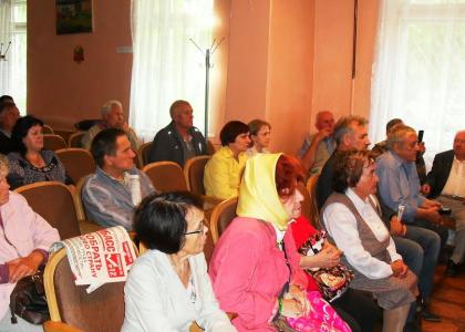 На встречу собралось около 50 человек – неравнодушных граждан, сторонников КПРФ, а также представителей общественных организаций Совета депутатов города.